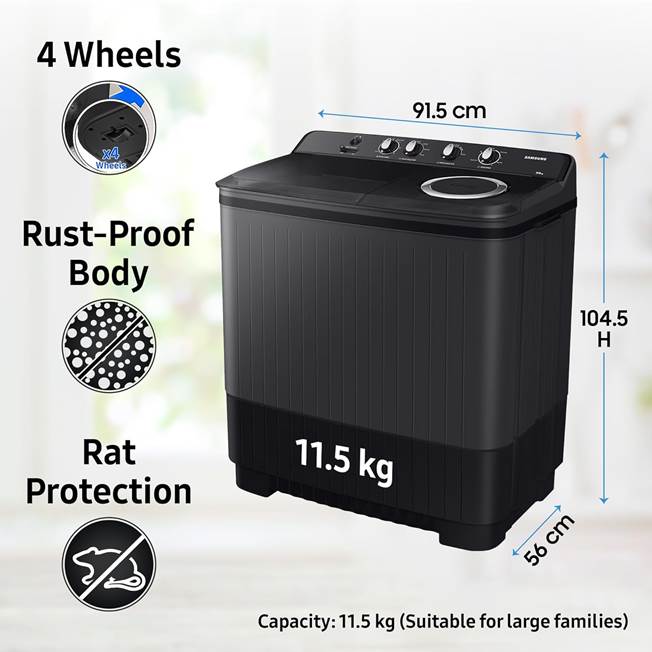 Samsung wm 11.5 kg(WT11A4260GD/TL,Dark Gray)