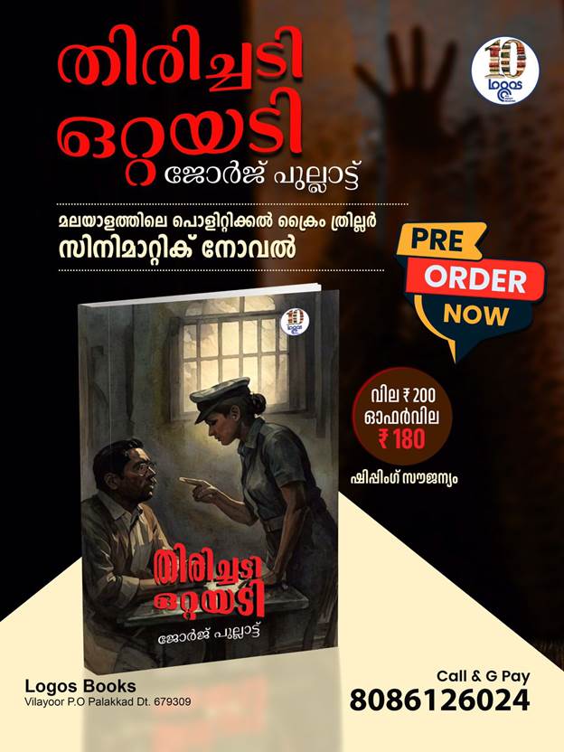 Thirichadi Ottayadi by George Pullatt A cinematic political thriller novel in Malayalam Pre-Order Now