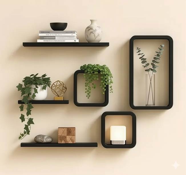 Multi purpose wooden rack ,Black cube rectangle shelves WoodLab Premium product ;Long lasting Made off High quality materials. DIY product :Do it Yourself/ can assemble the product easily